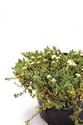 A sweet native ground cover natural grows on coastal and montane cliffs. Low growing to 10cm high by 1m wide. Leaf colour is a blue-silver which creates a nice contrast with other foliage. Tiny white flowers appear from summer. Low maintenace. Needs full sun and well draining soil. Very tolerant of frosts and wind.