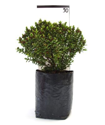 Hebe decumbens is a handsome spreading evergreen shrub growing to 40cm tall by 80cm wide. It has small mid green leaves with a red margin that is set off nicely by the dark almost black stems. In late spring - early summer it produces small white flowers that are loved by native bees and insects. As it is naturally found in dry montane areas at thetop of the south island it is hardy to frost and drought conditions.