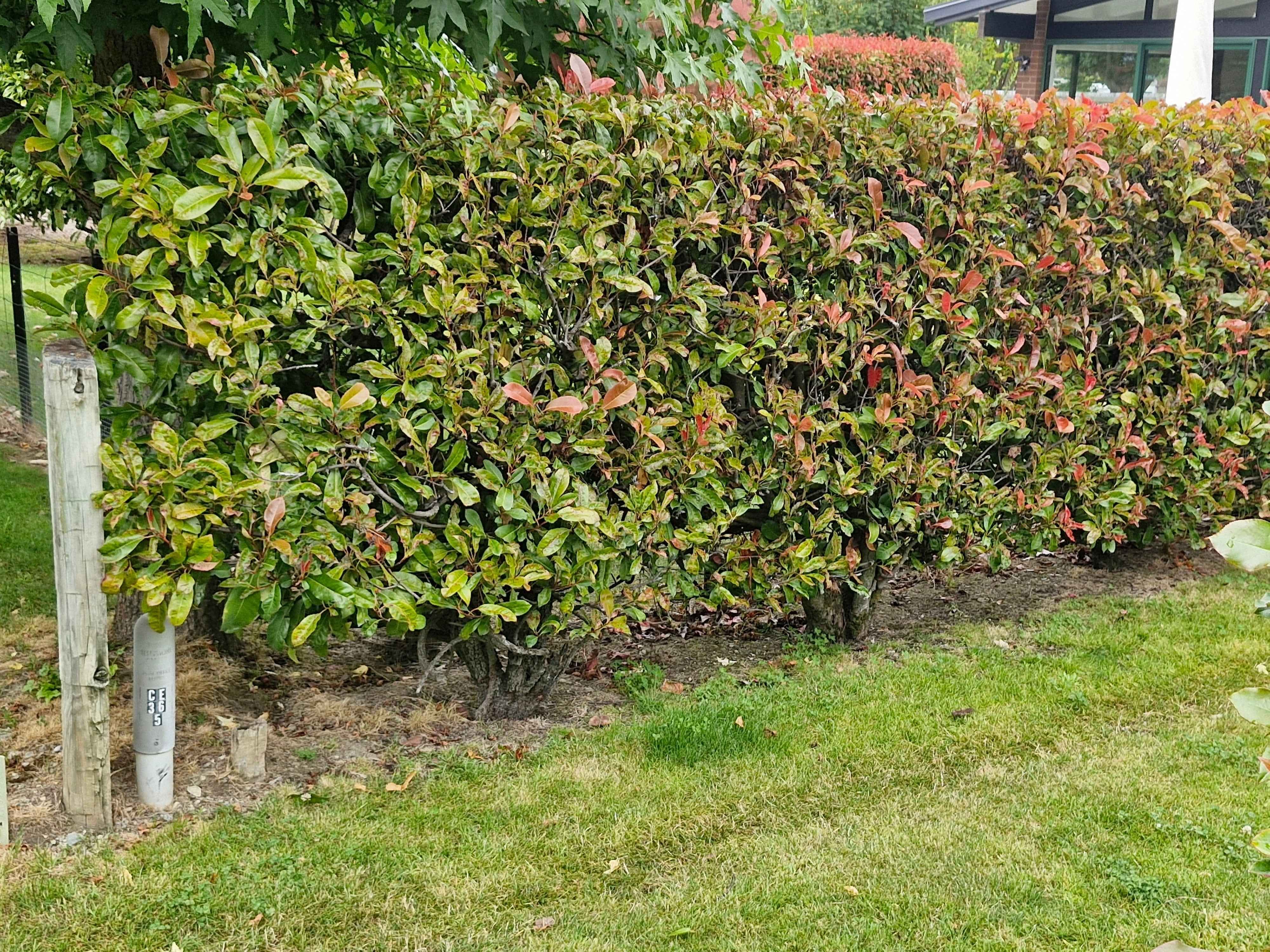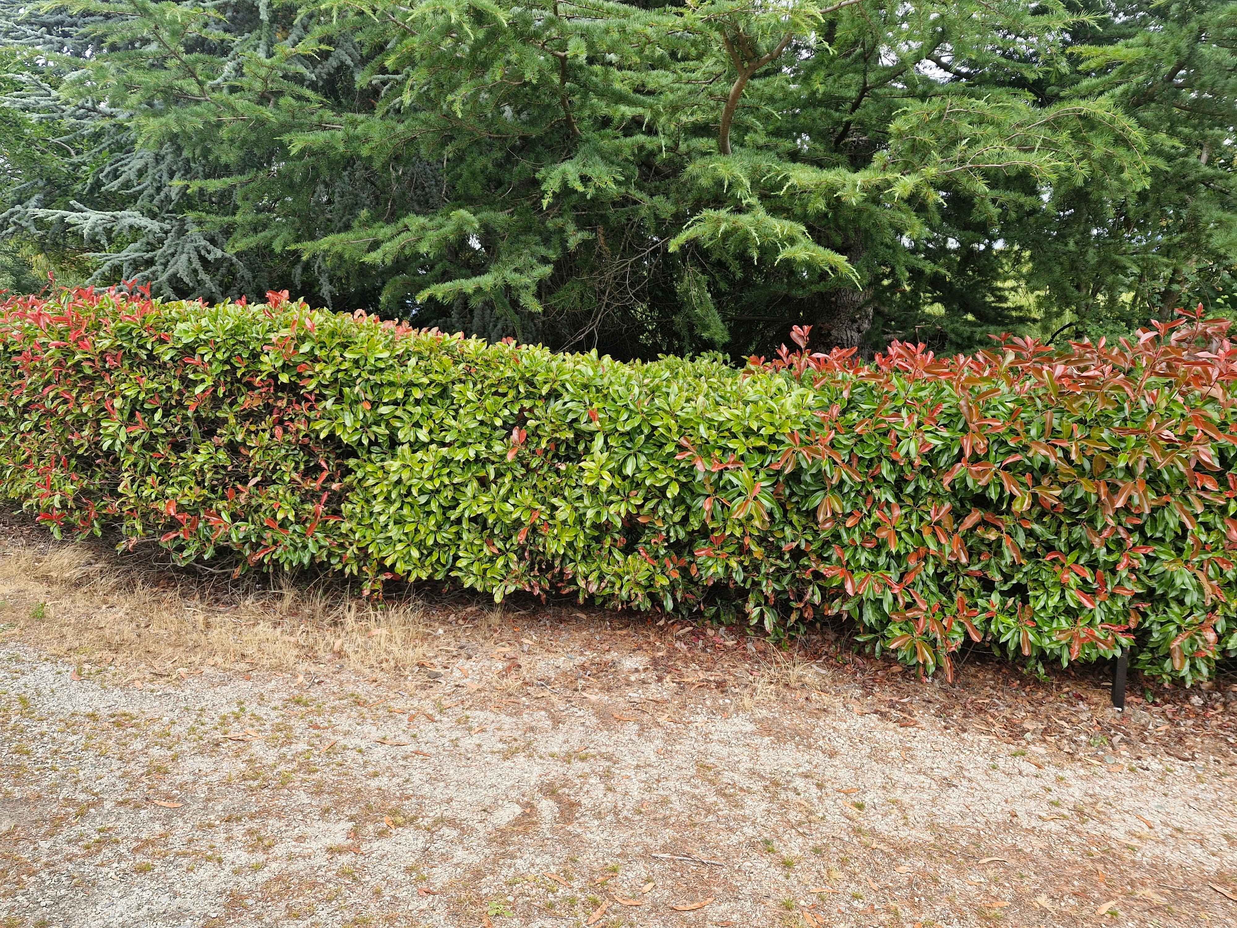 Above: Photinia ‘Red Robin’ planted at 1m spacing for a more suburban quick hedge, much more mature plants at 2-3m spacing giving a similar effect, and a mature specimen standing alone